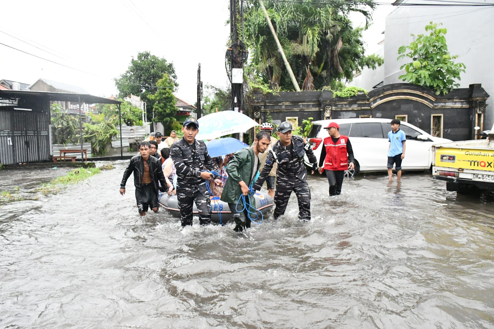 TNI Angkatan laut Evakuasi Warga Terjebak Banjir Bali